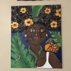 Original Acrylic Painting of Woman with Flowers & Butterfly on Canvas $90Elgin, SC