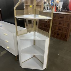 Corner Wine Cabinet Corner Bar with Detachable Wine Rack and Glass Holder, Farmhouse Style Furniture Bar with Mesh Door,Gold $99 Warehouse Clearance $99Irmo, SC