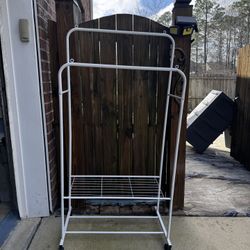 Handy white metal garment rack. Has two rods for hanging lots of clothes and a bottom wire shelf for shoes or storage. Comes with wheels so it's easy $70Columbia, SC