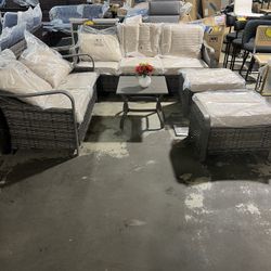 5-Piece Wicker Outdoor Patio Conversation Set 3 seats and love seats with Cushions, Ottomans and Coffee Table Brand new and already assembled $499 W$499Irmo, SC