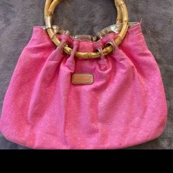Pink Lilly Pulitzer Bag with Bamboo Handles