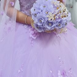 vestido de quinceañera talla 8 con almohada y banquete de flores y oso y 2 coronas con algunas decoraciones todo como nuevo en excelentes condiciones $450Anderson, SC