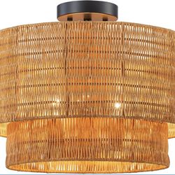 New 15.7”Rattan Ceiling Light Fixture, 3-Lights Coastal Hand-Woven Semi Flush Mount Natural Wicker$40Greer, SC