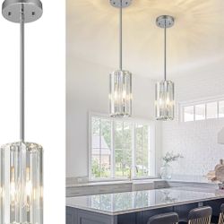 New 5.1”W Pack of 2 Chrome Pendant Crystal Mini Chandelier Adjustable Height Dimmable Hardwired $50Greer, SC