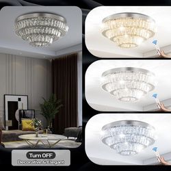New 18” K9 Crystal Chandelier Flush Mount, 3-Tier Round 50W Dimmable LED Ceiling Light with Remote$70Taylors, SC