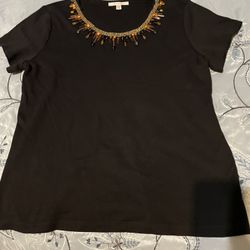 Ladies Black Beaded Top Shirt JM Collection Size L Large $4Taylors, SC