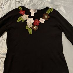 Ladies Xl Vintage Joseph A Black Top Sequins Felt Appliqué $8Taylors, SC