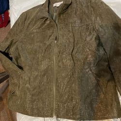 Ladies Birch Hill Faux Suede XL Alligator Print Olive Green Blazer $12Taylors, SC