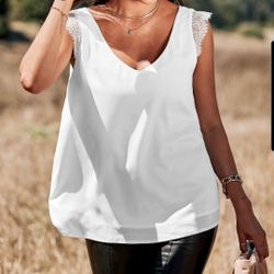 Scalloped White V-Neck Top Womens Size S$19Duncan, SC
