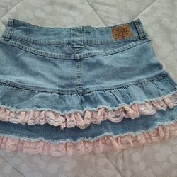 New Really Cute Denim Skirt W/ PINK 🩷 RUFFLES, Size 13. See Photos. Cash And Pickup Only$5Simpsonville, SC