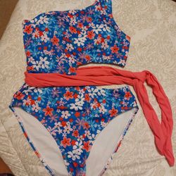 New Beautiful Bathing Suit Size LARGE. Off The Sho. Open On Side. PINK BELT ( ATTACHED TO SUIT) TO TIE AROUND. LOOKS BETTER IN PERSON. SEE PHOTOS.$10Simpsonville, SC