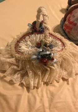 Vintage handmade craft wedding basket lace mauve blue$10Taylors, SC