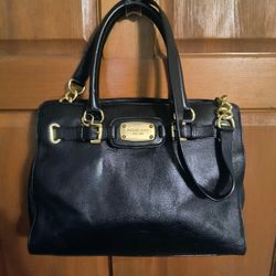 MICHAEL KORS "Hamilton" Black Saffinao Leather Silver Tone Large Shoulder Bag retail $598 EUC$65Easley, SC