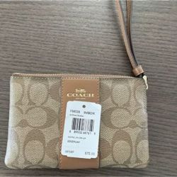 Coach Corner Zip Signature PVC Wristlet Khaki Saddle F58035 – Brand New With Tags – Authentic$65Mauldin, SC