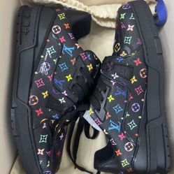Leather Calfskin Lace-up Low-top Fashion sneakers Unisex Black and white$238Duncan, SC