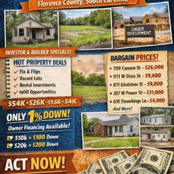 Over 15 URBAN RENEWAL PROPERTIES FOR SALE$123Florence, SC