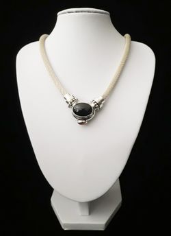 17" (Joseph Esposito), Espo Sig, Espo Snap". Woven Solid Sterling Silver Necklace w Solid Sterling Silver Black Onyx & Amber Pendant, signed$138Columbia, SC