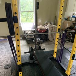 Olympic Squat Rack Cage/Pull ups/Storage Weight Pegs/Bench/240 LBS Olympic Plates/45 LB Bar $600Hope Mills, NC