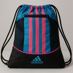 Adidas Drawstring Backpack Blue Pink Stripes – Lightweight Gym Sackpack with Front Zipper Pocket