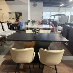 🔥Set of 5🔥Black 61.81 inch Extendable Dining Table with Built-in Storage, Modern Wooden Table with Sturdy Metal Base, Adjustable Tabletop whit Beige$399Irmo, SC