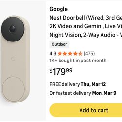 Google Nest Doorbell (Wired, 3rd Gen)$80Greenville, SC