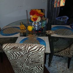 Glass dining table with 4 chairsStylish round glass dining table. Has a cool frosted edge and sturdy metal base. Comes with 4 white chairs. $120Piedmont, SC