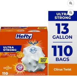 Hefty Ultra Strong 13 Gallon Trash Bags, Tall Kitchen Trash Bags, White, Citrus Twist Scent, 110 Bags$10Inman, SC