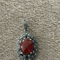 Sterling Silver cornelian Rock Pendant Marcasite $69Wellford, SC