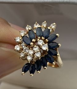 14K gold 1.46 TCW Natural Diamond & Blue sapphire cluster cocktail ring size 5.63$250Greer, SC