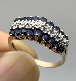 10K gold 0.51CTW Diamond & Blue Sapphire 3 Row Band Ring Size 6$0Greer, SC