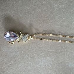 Newly Crafted Pink Crystal and Blingy Cat Necklace$20Longs, SC