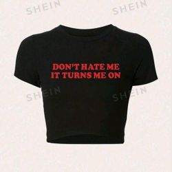 "DON'T HATE ME IT TURNS ME ON" Slim Fit Crop Top LARGE (8/10)$8Myrtle Beach, SC