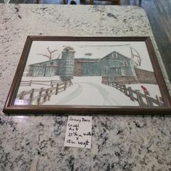Pre Owned Snowy Barn Crewel Art$40Longs, SC