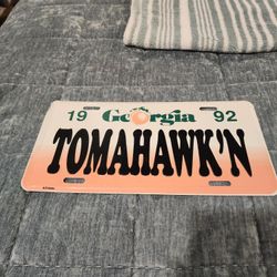 VINTAGE 1992 Georgia Tomahawk’n Atlanta Braves Metal Booster License Plate $30Galivants Fry, SC