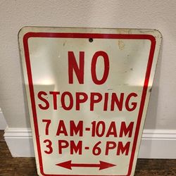VINTAGE METAL NO STOPPING 7AM-10AM 3PM-6PM STREET SIGN 12" by 18"$49Galivants Fry, SC