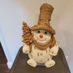 VINTAGE Gold And White Christmas Winter Snowman With Tree Statue 11.5" Tall$20Galivants Fry, SC
