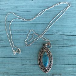 Beautiful Vintage Sterling Silver .925 Turquoise Pendant On 23” Italy Box Chain Necklace-I can possibly swap chain size, just ask if needed. I don’t c$50Little River, SC