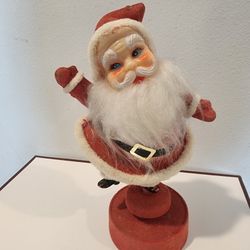 VINTAGE Flocked Velvet Dancing Santa Claus Music Box Jingle Bells Christmas 50s$55Galivants Fry, SC