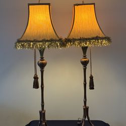 Pair of 35" Bamboo Table Lamps – Brass Finish & Tassel Shades$90Charlotte, NC