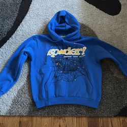 Sp5der Hoodie Dark Blue Size Large Never Worn Puff Print Text$125Charlotte, NC