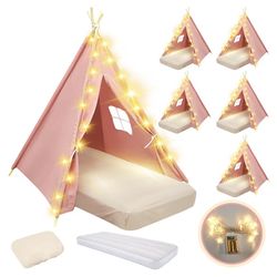 6 Pack Sleepovers Teepee Tents for Kids Bulk with Mattress Sheet, Star Lights, Natural Cotton,$160Monroe, NC