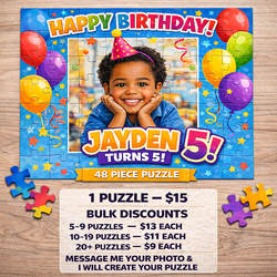 Custom Kids Photo Puzzle – 48 Piece Personalized Birthday Puzzle$15Charlotte, NC