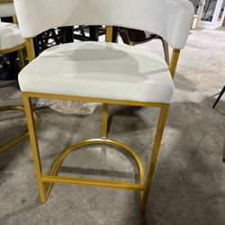 Brand new Beige Modern Velvet Bar Stools with Barrel Backrest, Upholstered Seat, and Gold Metal Footrest – 25.6-Inch Seat Height, Ideal for Counters, $70Charlotte, NC