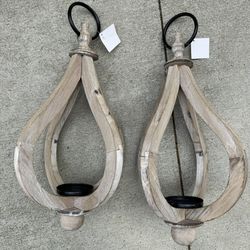 Set of 2 Metal Wall Candle Sconces – Brown Glass Holders$10Charlotte, NC