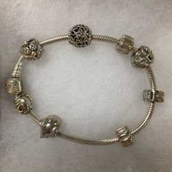 Pandora 7” Silver Bracelet With Charms & Gold Accents$250Rock Hill, SC