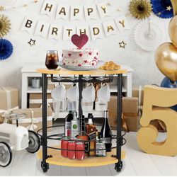lesolar Mini Mobile Round Coffee Table, 2 Tier MDF Board Load-Bearing 130 LBS Industrial Bar Cart with Lockable Wheels, Coffee Corner Station with Win$40Charlotte, NC
