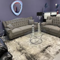 ESQUIRE Dark Shadow Gray 2pc Tufted Nail Head Wingback “Upholstered Sofa & Love Seat Collection” $1,095Charlotte, NC