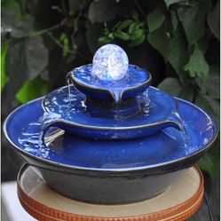 Ceramic Tabletop Fountain, Blue, Fountain with Ball for Indoor Decor, Size 11.8 x 11.8 x 7.8 inch, Material Ceramic, Includes Water Pump and 6 foot Lo$40Charlotte, NC