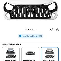 Front Grill Shark Grille Compatible with 2007-2018 Jeep Wrangler Rubicon Sahara Sport JK JKU, White$105Matthews, NC