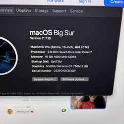 MacBook Pro (Retina, 15-inch, Mid 2014) READ DESCRIPTION $150Charlotte, NC